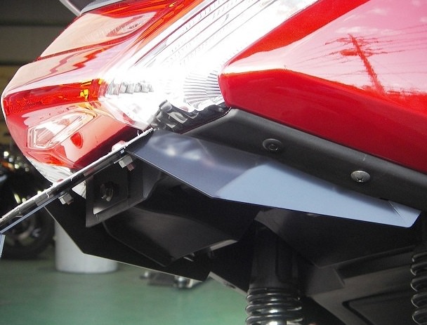 今回のNMAXは純正のリフレクターの裏側形状が今までのモノと違うのもあり標準リフレクタータイプのフェンダーレスはラインナップせずにスリムリフレクターのみの設定としました。