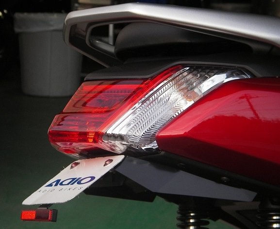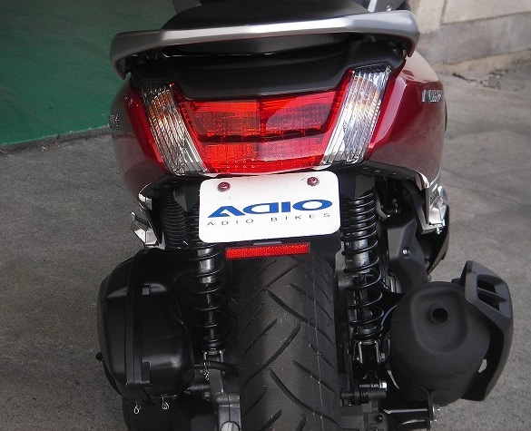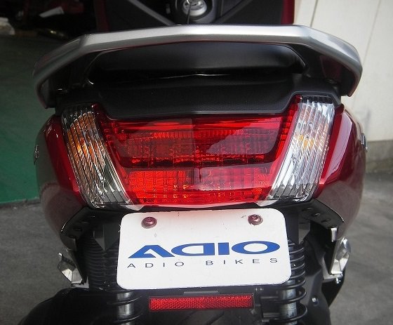 アディオでは定番となっている左右セパレートタイプの形状としナンバー位置は極量テールランプに近づける事でスッキリしたデザインとしました。