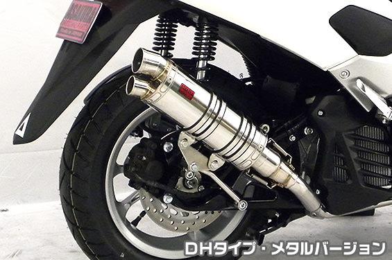 ※平成22年4月1日より施行された認証制度に適合する認証マフラーではありません。ご理解の程よろしくお願い致します。※受注生産商品となりますのでご注文後2週間程度お時間をいただく商品となります。NMAX用 DDRタイプマフラー DHタイプ メタルバージョンです。※車体型式:EBJ-SE86J/エンジン型式:E3P8E に適合します。新時代から導き出された究極のイノベーションデザインで非常にインパクトあるマフラーです。メタルバージョンはステンレスをバフ磨きでピカピカに仕上げています。排気口は大小2本出しでステンレス削りだし部材を採用した【 DHタイプ 】消音用のバッフルが2個装備されている【 ダブルバッフル仕様 】となっており、バッフル無し、バッフル1個装着、バッフル2個装着と3種類の排気音を選べるサウンドセレクトスタイルになっています。バッフルはステンレスタイプとアルミタイプの2種類のバッフルが装備されています。音量はバッフル2個装着時の排気音量が 約85db(法定規制値内音量)、バッフル1個装着時の排気音量が 約87db、バッフル非装着時の排気音量が 約89db です。音質も耳障りな音でなく重低音のサウンドになっていますので、ノーマルマフラーではちょっと物足りない方にオススメです。サイレンサーはストレート構造ではなく隔壁構造になっていますので、音量は静かめに抑えられており近所迷惑になる事無く安心して走行できます。低中速を落とすことなく高回転でスムーズに回り扱いやすい設定になっています。振動防止のためサイレンサーとエキパイが2分割となる安心設計になっています。サイレンサーは、2点止めになっていますのでしっかりと固定でき、耐久性にも優れています。無加工ボルトオンにて装着できますので、必要な工具があれば簡単に取り付けできます。(取り付けに必要なボルト類は全て付属しております。)サイレンサーバンドにはスリットタイプを採用してデザインにもこだわっています。サイレンサーの固定にはサイレンサーバンドを採用し、バフ仕上げを施したステンレス製丸棒で組んだステーを介して固定しておりますので、従来のステーの固定より車体と調和した高級感あふれるマフラーです。オールステンレス製で、エキパイからサイレンサーまでバフ仕上げを施しています。ローダウンにも対応しておりますので、安心してご使用下さい。
