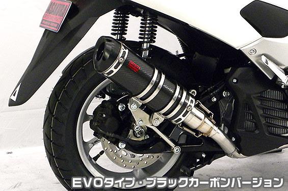 ※平成22年4月1日より施行された認証制度に適合する認証マフラーではありません。ご理解の程よろしくお願い致します。※受注生産商品となりますのでご注文後2週間程度お時間をいただく商品となります。NMAX用 DDRタイプマフラー EVOタイプ ブラックカーボンバージョンです。※車体型式:EBJ-SE86J/エンジン型式:E3P8E に適合します。新時代から導き出された究極のイノベーションデザインで非常にインパクトあるマフラーです。ブラックカーボンバージョンは、ステンレスサイレンサーにカーボンシートを巻いた仕様で、耐久性が抜群に高い構造を採用しています。アルミ素材から削り出したビレットタイプのエンドに、ブラックアルマイト処理を施した【 EVOタイプ 】消音用のバッフルが2個装備されている【 ダブルバッフル仕様 】となっており、バッフル無し、バッフル1個装着、バッフル2個装着と3種類の排気音を選べるサウンドセレクトスタイルになっています。バッフルはステンレスタイプ(EVOタイプはプレートタイプ)とアルミタイプの2種類のバッフルが装備されています。音量はバッフル2個装着時の排気音量が 約85db(法定規制値内音量)、バッフル1個装着時の排気音量が 約87db、バッフル非装着時の排気音量が 約89db です。音質も耳障りな音でなく重低音のサウンドになっていますので、ノーマルマフラーではちょっと物足りない方にオススメです。サイレンサーはストレート構造ではなく隔壁構造になっていますので、音量は静かめに抑えられており近所迷惑になる事無く安心して走行できます。低中速を落とすことなく高回転でスムーズに回り扱いやすい設定になっています。振動防止のためサイレンサーとエキパイが2分割となる安心設計になっています。サイレンサーは、2点止めになっていますのでしっかりと固定でき、耐久性にも優れています。無加工ボルトオンにて装着できますので、必要な工具があれば簡単に取り付けできます。(取り付けに必要なボルト類は全て付属しております。)サイレンサーバンドにはスリットタイプを採用してデザインにもこだわっています。サイレンサーの固定にはサイレンサーバンドを採用し、バフ仕上げを施したステンレス製丸棒で組んだステーを介して固定しておりますので、従来のステーの固定より車体と調和した高級感あふれるマフラーです。オールステンレス製で、エキパイからサイレンサーまでバフ仕上げを施しています。ローダウンにも対応しておりますので、安心してご使用下さい。