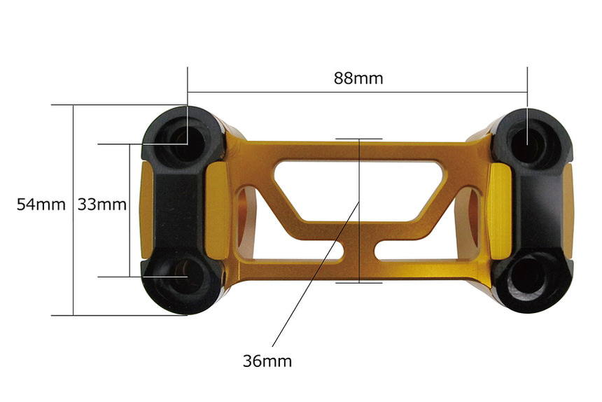 ※ポストトップはブラック・ゴールド・シルバー・ブルー・レッド・チタンカラー・グリーン・オレンジよりご選択いただけます。本体カラー:ブラックU-KANAYAの全商品は日本国内にて専門のスタッフが製品の組み立て及び検品を行っていますので、安心してご使用いただけます。アルミ削り出しハンドルクランプ 1台分のセットです。ポストトップも8色からご選択いただけますので、全64パターンの中からお好きな組み合わせをお選びください。高強度・耐食性に優れた6061アルミ材を使用表面はアルマイト処理されています。精密なフルマシニング加工により高級感のある仕上がりとなっています。純正クランプより15mmアップします。対応ハンドルバー径:φ22.2純正ハンドルポストと入れ替えて装着してください。純正ハンドルの場合はワイヤーやハーネスを変更することなく装着可能です。ステンレス製取付ボルトが4本付属します。この商品は予告なしに価格や仕様を変更する場合があります。