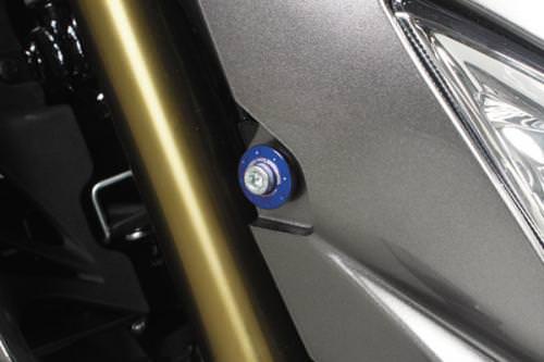 ノーマルボルトを取外し、本製品を装着することで車両のドレスアップ効果を高めます。【詳細】ノーマルヘッドライトカウルのサイドボルトと交換するだけの簡単装着で、フロント周りをドレスアップ出来ます。サイドカラーはアルミ材を削り出し、表面にカラーアルマイトを施しています。