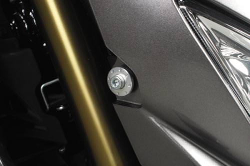 ノーマルボルトを取外し、本製品を装着することで車両のドレスアップ効果を高めます。【詳細】ノーマルヘッドライトカウルのサイドボルトと交換するだけの簡単装着で、フロント周りをドレスアップ出来ます。サイドカラーはアルミ材を削り出し、表面にカラーアルマイトを施しています。
