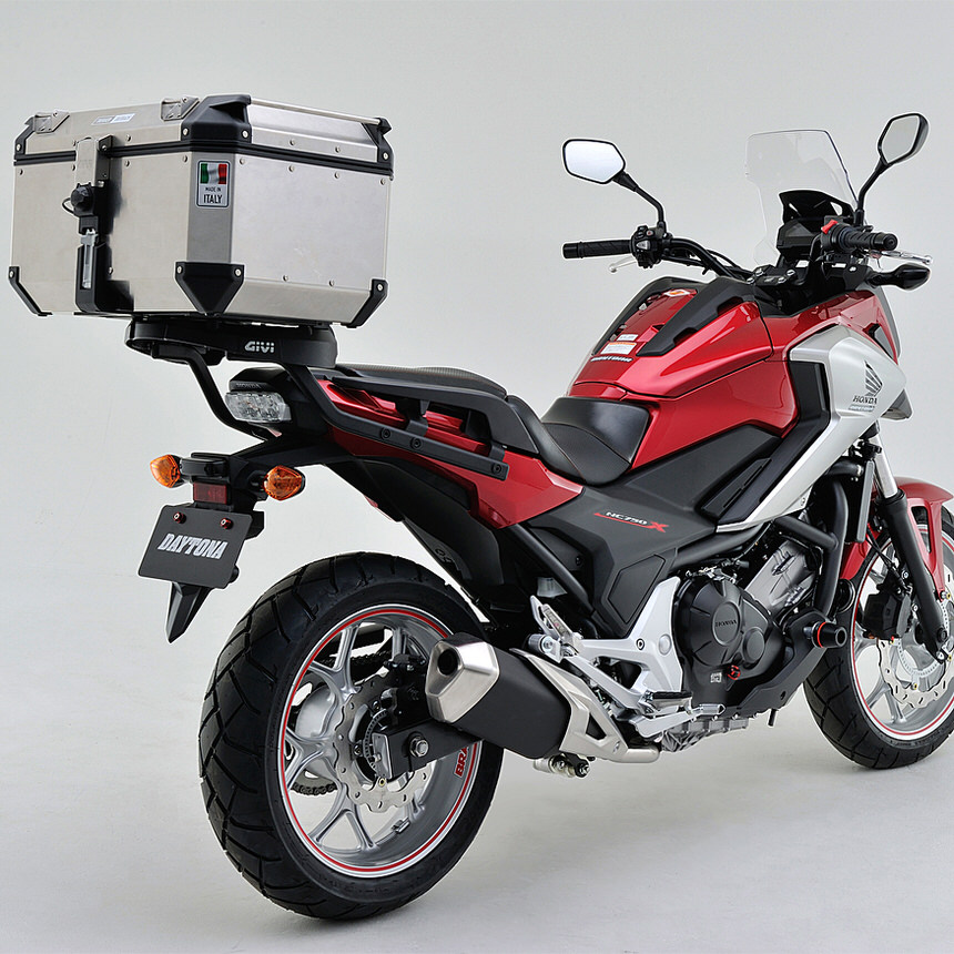 最大積載量:モノキー10kg、モノロック3kg。※操縦性を考慮し、デイトナではモノキーでも3kg以下を推奨。GIVIトップケースを装着するために必要。ベース(モノキー用M5/ M7、モノロック用M5M/M6M)は別売り。※ 純正グラブレール専用。※個体差による純正リアカウルへの傷つき注意。