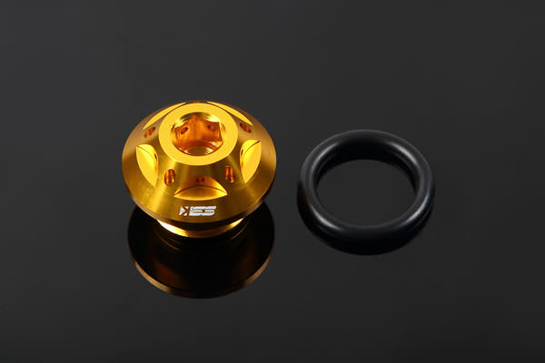 カラー:ゴールド高強度アルミニウム合金素材(A6061-T6処理済み)で、精密加工された本体にアルマイト処理を行うことにより高級感・高精度を実現。ワイヤーロック用穴開け加工済み。Oリング付属。