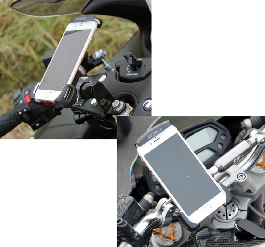 アルミスマートフォンホルダー 本体ブラック/クランプ部シルバー(iPhone5/6/6 Plus対応) SSK SPEEDRA(スピードラ)