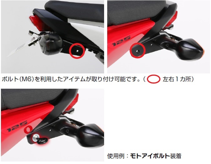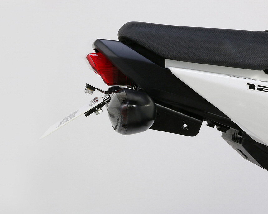ボルトオンタイプスチール製ブラックLEDナンバー灯付属こちらはヘルメットロックが付属していない商品になります。ノーマルウインカー再使用ノーマルフェンダーを外してスッキリしたスタイルにドレスアップ。別途ヘルメットロック(503-0600100、503-0600110を取付可能です。)