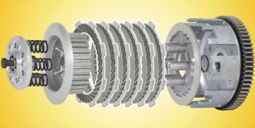 従来品に比べ、クラッチアウターなどの回転部分を小径化することで、オイル拡散によるロス馬力の減少や更なるレスポンスの向上と回転マス重量の約12%軽減を実現し、エンジンパワーを無駄無く伝達します。ケブラー配合フリクションディスクを6枚採用し、6ディスク化を実現。これにより、クラッチの容量が従来品に比べ約20%アップし、高出力エンジンに対応します。