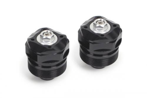 ※フロントフォークスプリングの荷重調整ができるイニシャルアジャスターではありません。イニシャルアジャスターをモチーフにアルミを精巧に削り出し、表面にアルマイトを施したフロントフォークトップボルトです。GROM(?2015年モデル)、及びMSX125(?2015年モデル)は対象外です。トップボルト本体とキャップは分割構造を採用することでリアルな形状を演出しました。純正フロントフォークのトップボルトと交換するだけで簡単にドレスアップが行えます。カラーアルマイトトップボルト本体:ブラックキャップ:シルバー※3枚目の写真はブラック/ブラックです。