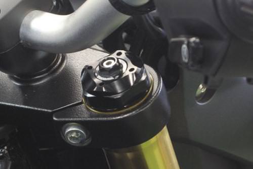 ※フロントフォークスプリングの荷重調整ができるイニシャルアジャスターではありません。イニシャルアジャスターをモチーフにアルミを精巧に削り出し、表面にアルマイトを施したフロントフォークトップボルトです。GROM(?2015年モデル)、及びMSX125(?2015年モデル)は対象外です。トップボルト本体とキャップは分割構造を採用することでリアルな形状を演出しました。純正フロントフォークのトップボルトと交換するだけで簡単にドレスアップが行えます。カラーアルマイトトップボルト本体:ブラックキャップ:ブラック