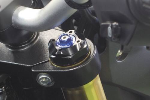 ※フロントフォークスプリングの荷重調整ができるイニシャルアジャスターではありません。イニシャルアジャスターをモチーフにアルミを精巧に削り出し、表面にアルマイトを施したフロントフォークトップボルトです。GROM(?2015年モデル)、及びMSX125(?2015年モデル)は対象外です。トップボルト本体とキャップは分割構造を採用することでリアルな形状を演出しました。純正フロントフォークのトップボルトと交換するだけで簡単にドレスアップが行えます。カラーアルマイトトップボルト本体:ブラックキャップ:ブルー※3枚目の写真はブラック/ブラックです。