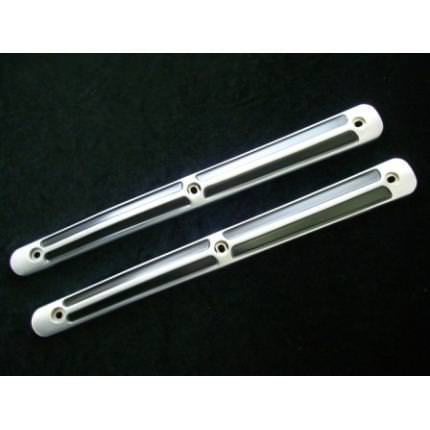 CB750Four に対応のマフラープロテクター メッキです。CB750FOUR4本マフラーの、アッパー側に装着するヒートガード。純正品を忠実に再現するため、専用のプレス型(金型)を開発。絶妙な湾曲アール形状、プロテクター内側の深さ等高品質を誇ります。表面をメッキ仕上げとしたタイプと、艶消しとした2バージョンをラインナップ。好み、年式等に応じて選択可能です。