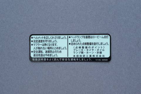 CB750Four K0-K4に対応のガソリンタンクコーション 日本語版です。国内販売されたモデルに貼られていた日本語で書かれたコーションステッカー。