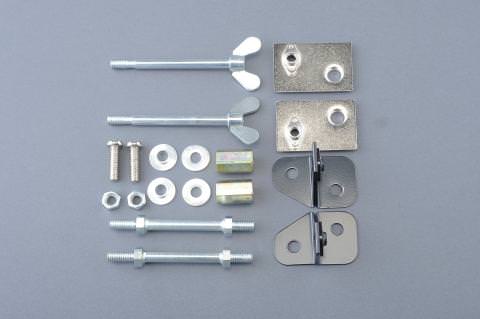 CB750Four K0初期に対応の2点留めエアクリーナーケースステーセットです。K0初期に使われた2点留めエアクリーナーケースを機能させるために必要なネジ、ボルト、ナット、ステーなどをセットにしたもの。