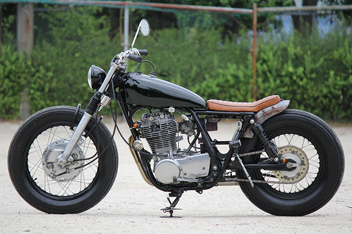 SR400/500専用のスマートなガスタンク。ロングセラーアイテムです。SR400/500専用のスマートなFRP製ガスタンク。レーサーの雰囲気が強く出たデザイン。カフェレーサーやトラッカー、チョッパーにもあらゆるスタイルにマッチ。幅:約553mm 幅:約250mm 高さ:約197mmタンク容量:約8L内容物:タンク本体、キャップ、、ガソリンフィルター、ホース×1FRP・黒ゲルコートについて・FRPは元々黒色ですが、これは塗装の黒ではなく「キレイな黒色」では御座いません。そのままの使用も可能ですが、経年による変色、薄れが出てきますので塗装される事をお奨め致します。 ・FRP製品は製造工程上の型抜きの際などに避けることの出来ない擦れ傷が生じます。また、若干の色褪せについても「FRP製品の許容範囲内」とさせて頂きます。あくまでも塗装の下地としてご理解下さい。 ・FRP製品は、無理に力を加えると割れ等の症状がでる場合があります。