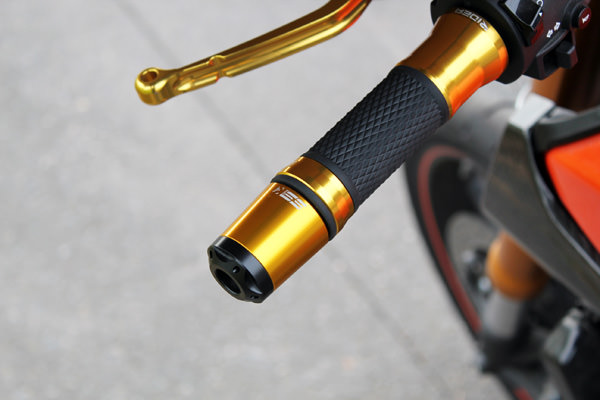 ※カラー:ゴールド※モニターの環境等の理由により画像の色と実物の色が若干異なって見える場合がございます。※取り付け写真はイメージです。商品のカラーと異なる場合もあります。※この商品は予告なしに価格や仕様を変更する場合がございます。重量(片側):約120g高強度アルミニウム合金素材(A6061-T6)削り出しを使用し、表面の変色や腐食を防ぎ耐摩耗性も向上させるアルマイト仕上げで美しい外観を長く保ちます。先端部は摩擦係数の少ないPOM(ポリオキシメチレン)で製作しておりますので、万一の転倒時に車体の損傷を最小限に抑えます。転倒時等に破損する可能性があるPOMカバーは単品でご購入いただけます。