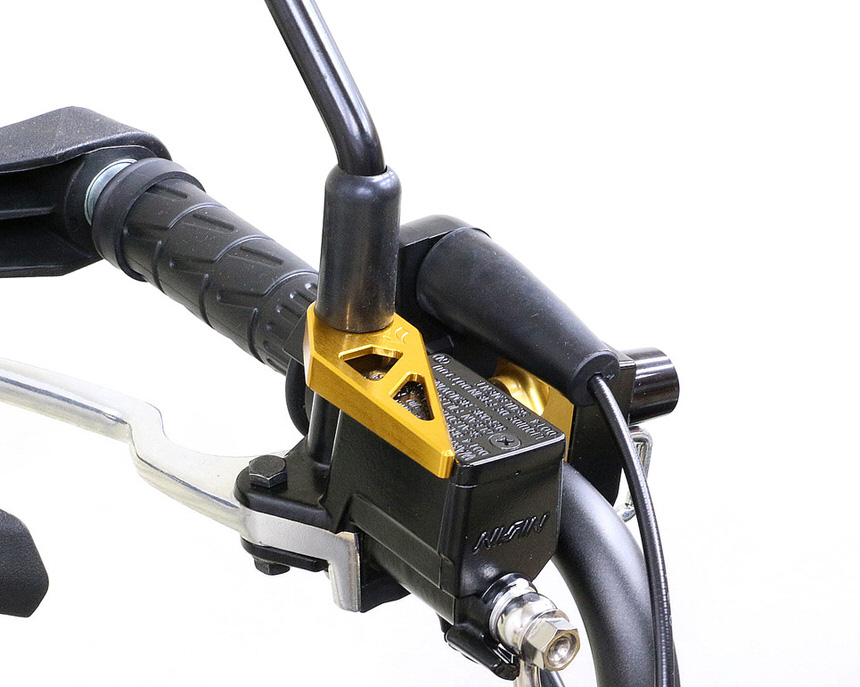 アルミ削り出し製で、転倒時のマスターシリンダーの保護とドレスアップを兼ねたアイテムです。