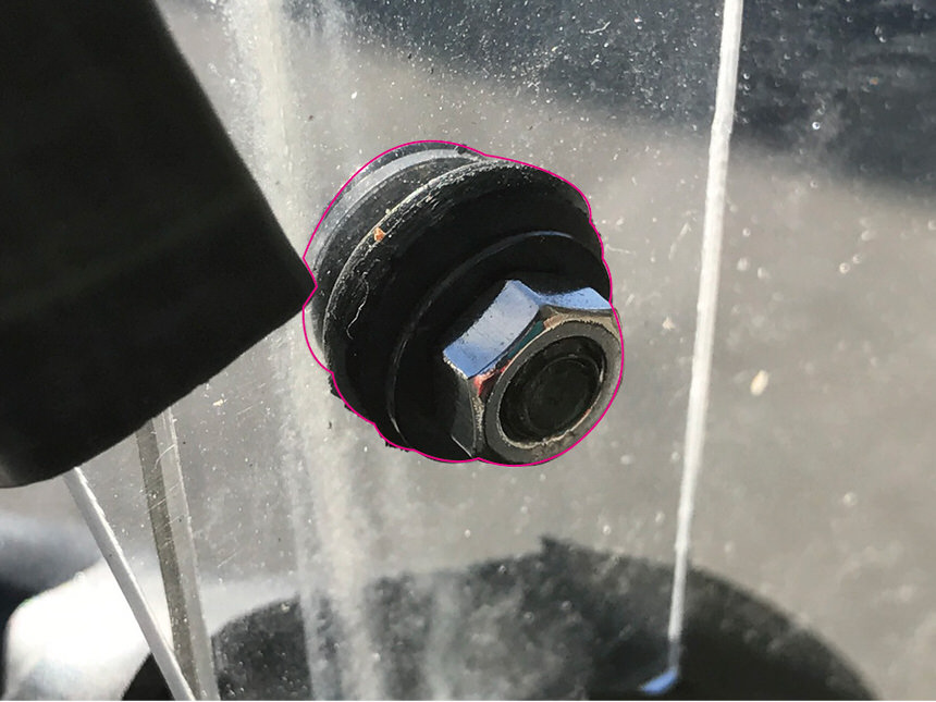 ワールドウォークのSR400用リアキャリアは車体との固定部分にラバーを入れてマウントする設計にしました。ボルトと車体との間にゴムをかませることで力を分散させ破損を防ぐ設計です。ゴムだけを挟む形だとボルトに緩みが生じるリスクがあるので中にはアルミのカラーを入れるようにしました。さらにゴムはクロロプレンゴムを採用。天然ゴムに比べて対候性、耐熱性、耐薬品性に優れており野外で使用するバイクのリアキャリアに使うのに最適な素材です。SR400には純正のグラブレールが装着されていますが、このグラブレールを外してリアキャリアを装着するための補強材を装着する設計にしました。補強材は4mmの平板に折り返しをつけました。金属は曲げをつけることで強度が増します。SR400独特の振動に耐えるだけでなくリアキャリアの積載重量を増やす役割も果たしています。二人乗りが出来るバイクにはグラブバーやシートのベルトなどが装着されていなければなりません。ワールドウォークのリアキャリアはグラブバーを外して装着する設計なのでグラブバーとしての役割も果たせるようにリアシートとリアキャリアの間に手が入る隙間を作りました。リアシートとリアキャリアの天板位置は大体同じ高さにそろえているのでリアシートと併用することで大型の荷物や重量物を積載することが可能になります。最大積載量5kg