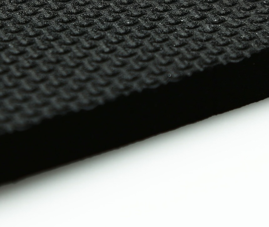 表面にスベリ止め加工を施したシートスポンジ。サーキットでも求められる耐久性と使用感を満たす作りになっています。両面シール貼付けタイプ。