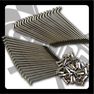 各種スポークのみでの販売です。モーターガレージグッズ社取扱いのリムに対応。内容物:スポーク×36本 ニップル×36個※ニップルの締め過ぎはスポークの破損に繋がります。※装着するタイヤによってトルクロッド等のオフセットが必要となる場合が御座います。※モーターガレージグッズ社取扱いのリムに対応致します。※その他社外リムへの適合は不可、または不明となります。エストレア・リア16インチ装着時の注意点※装着するタイヤのはハイトが高い場合、タイヤのトップとスイングアームが干渉致します。※干渉する場合はスイングアーム側の削り加工が必要となります。※モーターガレージグッズ社取扱タイヤではH.D.Sクラシック5.00-16のみ、干渉せず装着が可能となります。