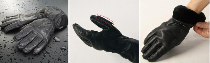 甲側/テクナライン超撥水レザー 掌側/テクナライン超撥水レザー 裏地/フェイクボア、フリース インナー/ハイポーラグローブインサート