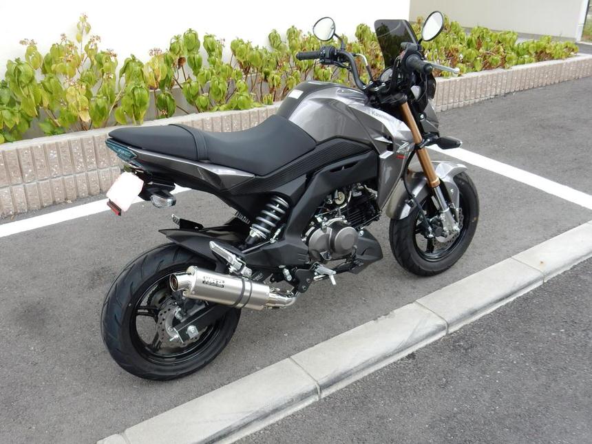 ショートオーバルタイプは、過去にMSシリーズとして活躍したφ83オーバルサイレンサーをベンチテストによりこれまたショートタイプに全長を整え、スポーティーなデザインをそのままに低音の効いたスポーティーサウンドを演出してくれます。スリムで計量コンパクトデザインのサイレンサーをUPスタイルにレイアウトし、更にZ125PROの持つ魅力を引き立ててくれる事と思います。マフラー開発においては固定概念に捉われる事無くシャーシダイナモでベンチテストを行なった結果エキゾーストパイプはφ25.4→φ32→φ42.7→φ50へとこのエンジン性能を最大限引き出せるべくテーパードデザインを採用。また環境面においてもパワーロスをする事無く排ガス浄化と性能面の両立する目的でワンランク上のハニカム触媒を採用。環境性能とエンジン性能を如何なく発揮しており、JMCA認証試験をしっかり合格した「政府認証マフラー」として発売となりました。近接排気音:84db加速走行音:77db触媒:内臓モデルオイル交換:OKオイルフィルター:OK