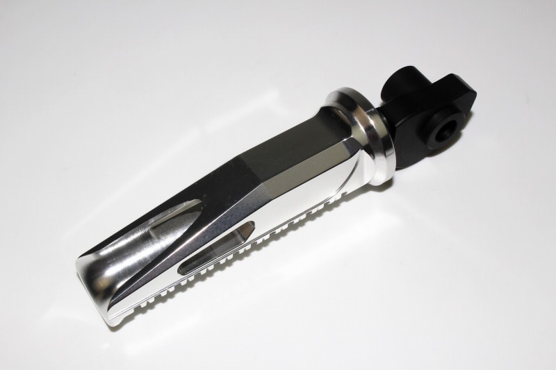 【特長】スタイリッシュデザインのアルミ製ビレットフットステップです。ピポットパーツ&心棒、パイプステップパーツの2ピース構造設計です。コーナーリング時に路面クリアランスを確保するためのハス切りデザイン。純正のステップピン、ステップスプリングをご使用ください。5Lモンキー以降の6、12V車両に適合します。ゴリラ車全年式にも適合します。