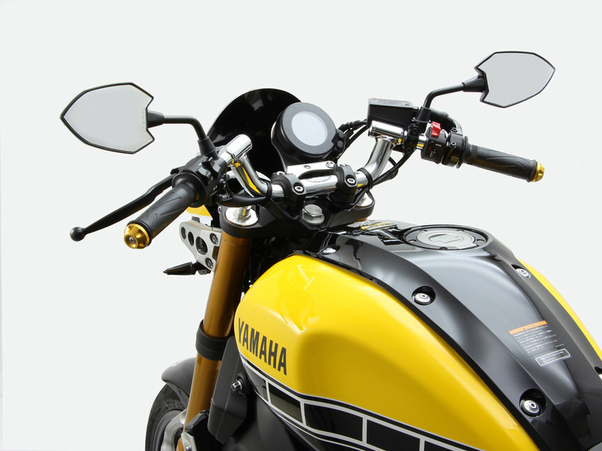 スチール製幅680mm 高さ90mm エンド内径18mmクランプ部外径φ28.6グリップ部外径φ22.2mm内径φ18mmコンパクトな前加重増のポジションに!ノーマル比ポジション 35mmダウン/75mm 前方へハンドル幅は35mm狭くなり、しぼり角は+ 5 度スチール製 スイッチ穴加工済み ボルトオンXSR900は付属メーターアップカラーなしで取付可ケーブル、ホース類はノーマルのままでOK※ハンドル内径φ18mm用サイドキャップが別途必要です。※全幅20mm以上の変更となりますので構造変更の申請が必要です。