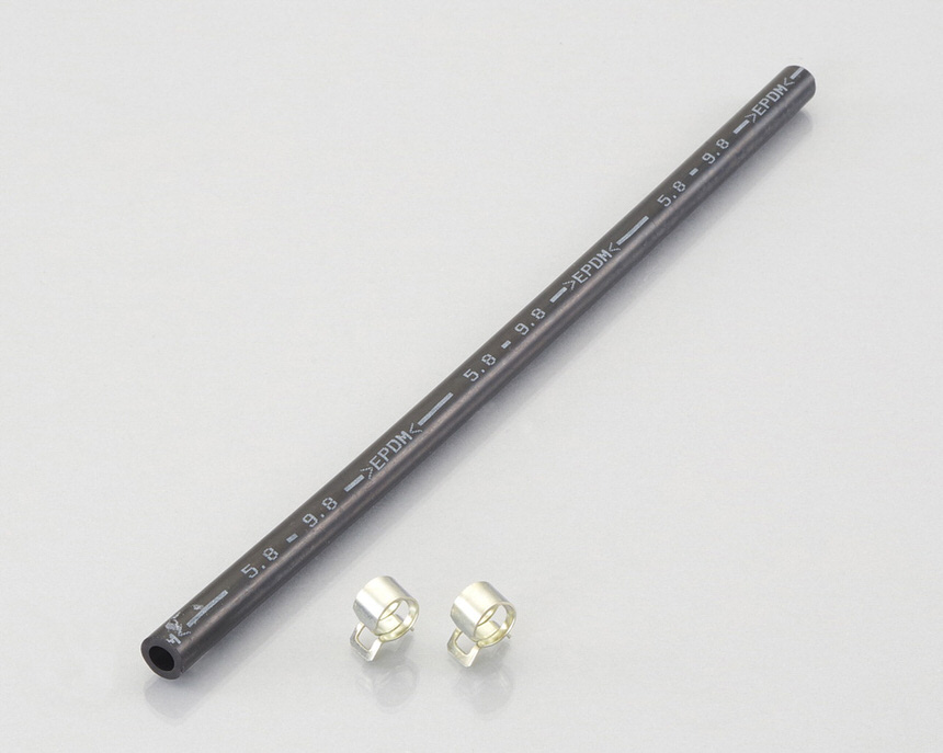 ホース内径:φ6、ホース外径:φ10、クレセントクランプ2ケ付属(スチール製/クロメート)、※耐ガソリン性ではありません。ガソリンホースとしての使用はしないでください。、※必ずリザーバータンク、マスターシリンダーのホース取り付け部の寸法をご確認下さい。、又、オイルの流れを妨げるような取り回しはしないで下さい。