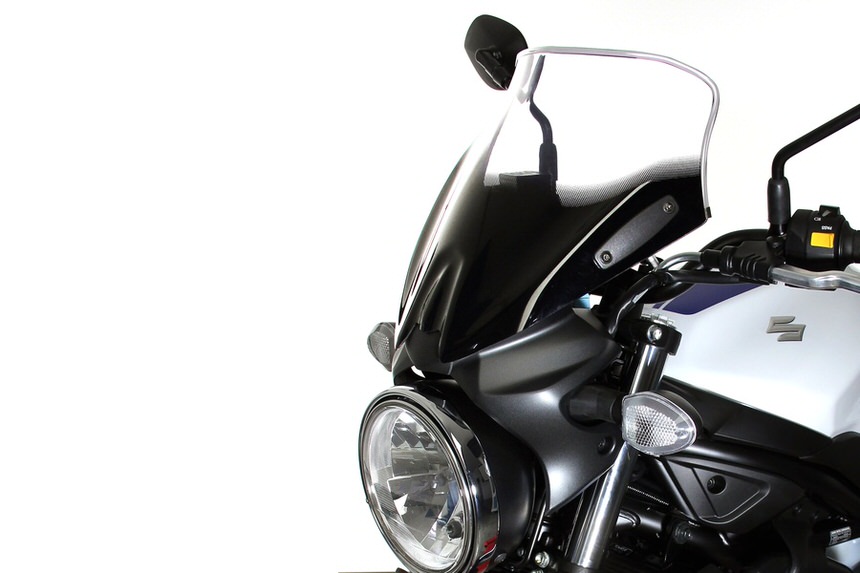 ※通常はご注文後2〜3営業日での発送となりますが、仕入れ先欠品の場合は本国(ドイツ)からの取り寄せとなるため、2カ月程度お時間をいただく場合がございます。※お届けまでお時間を頂戴する場合は別途メールにてご案内させていただきます。専用ステーが付属したSV650用スペシャルスクリーン専用マウンティングキット付き 縦:32.5cm、横34cmMRAスクリーンスポイラーは全体的にフラットな仕上げ、それでいてスポーティーな雰囲気を表現。スクリーンエンドの小さく跳ね上がったスポイラーが正面から来た空気を上部へ送り、体への抵抗を軽減します。ツアラーからスーパースポーツバイクまで、幅広いジャンルの車種にマッチします。