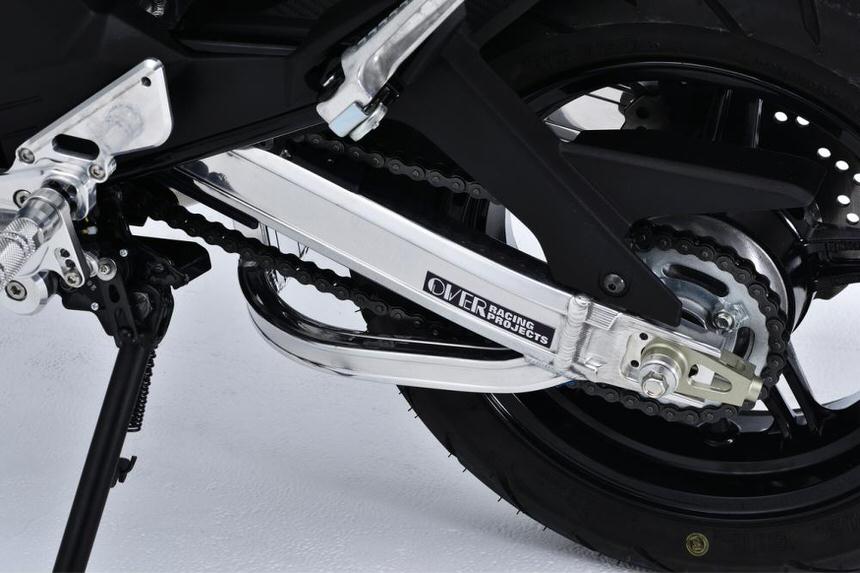 目の字断面のOVERオリジナルアルミパイプ(7N01材)をメインアームに採用、ビッグバイク用をミニマイズ設計したチェーンブロックやコの字型チェーン引きタイプ、ピボット部にはベアリングを標準装備。各部にハイスペックなパーツを採用し構成されています。・5cmロング・OVタイプ(メインパイプ:55x27mm)・スタビライザー付き・重量:2.9kg(STD4.62kg)・ピボットベアリング仕様・ポリッシュ仕上げ・純正ホイール対応・純正キャリパー&キャリパーサポート対応・純正インナーフェンダー取付対応・純正マフラー取り付け不可