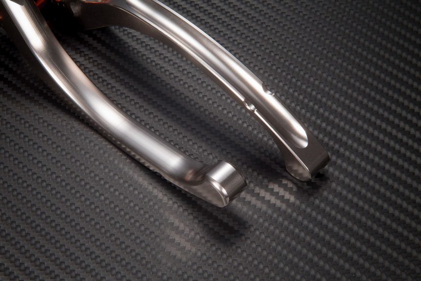 レバーエンド形状の最適化によりバーエンドへの接触を極力おさえる構造に仕上げました。