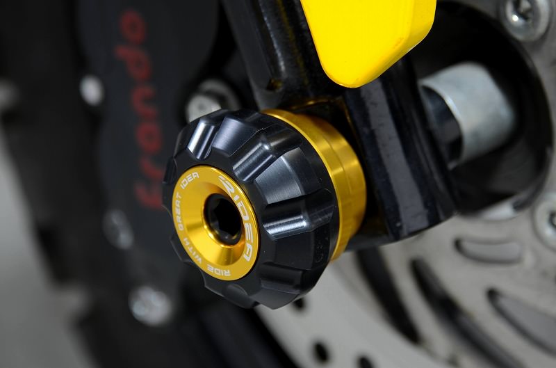 ※取り付け写真はイメージです、商品のカラーと異なる場合もあります。本製品のカラー:ブラック万が一の転倒時にアクスルシャフト部分を保護します。高強度アルミニウム合金素材(A6061-T6)削り出し、カラーアルマイト仕上げの本体とヘッド部のみPOM(ポリオキシメチレン)を採用し、高いデザイン性と機能性を両立したスライダーです。メーカー品番:AS-B04B04-BK