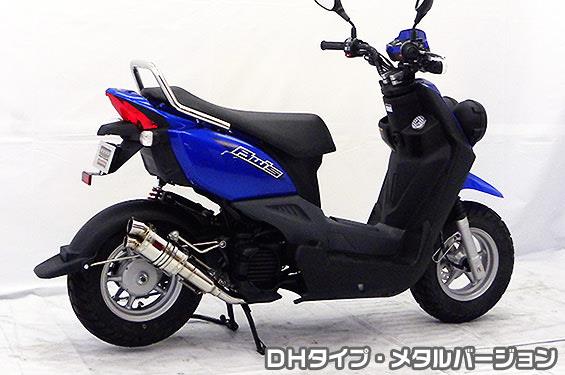 ※受注生産商品となっており、商品手配後 2週間程度入荷にお時間を頂きます。BW'S50【JBH-SA53J】用 ZZRタイプマフラー DHタイプ メタルバージョンです。※車体型式:JBH-SA53J のO2センサー装着モデルに適合します。※その他の型式、O2センサー非装着モデルには適合しませんのでご注意下さい。※平成22年4月1日より施行された認証制度に適合する認証マフラーではありません。ご理解の程よろしくお願い致します。新時代から導き出された究極のイノベーションデザインで非常にインパクトあるマフラーです。メタルバージョンはステンレスをバフ磨きでピカピカに仕上げています。排気口は大小2本出しでステンレス削りだし部材を採用した【DHタイプ】消音用のバッフルが2個装備されている【ダブルバッフル仕様】となっており、バッフル無し、バッフル1個装着、バッフル2個装着と3種類の排気音を選べるサウンドセレクトスタイルになっています。バッフルはステンレスタイプとアルミタイプの2種類のバッフルが装備されています。音量はバッフル2個装着時の排気音量が 約82db(法定規制値内音量)、バッフル1個装着時の排気音量が 約84db、バッフル非装着時の排気音量が 約87db です。 音質も耳障りな音でなく重低音のサウンドになっていますので、ノーマルマフラーではちょっと物足りない方にオススメです。サイレンサーはストレート構造ではなく隔壁構造になっていますので、音量は静かめに抑えられており近所迷惑になる事無く安心して走行できます。低中速を落とすことなく高回転でスムーズに回り扱いやすい設定になっています。振動防止のためサイレンサーとエキパイが2分割となる安心設計になっています。サイレンサーは、2点止めになっていますのでしっかりと固定でき、耐久性にも優れています。無加工ボルトオンにて装着できますので、必要な工具があれば簡単に取り付けできます。(取り付けに必要なボルト類は全て付属しております。)サイレンサーバンドにはスリットタイプを採用してデザインにもこだわっています。サイレンサーの固定にはサイレンサーバンドを採用し、バフ仕上げを施したステンレス製丸棒で組んだステーを介して固定しておりますので、従来のステーの固定より車体と調和した高級感あふれるマフラーです。オールステンレス製で、エキパイからサイレンサーまでバフ仕上げを施しています。ローダウンにも対応しておりますので、安心してご使用下さい。