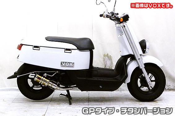※受注生産商品となっており、商品手配後 2週間程度入荷にお時間を頂きます。※平成22年4月1日より施行された認証制度に適合する認証マフラーではありません。ご理解の程よろしくお願い致します。※ジョグ【型式:JBH-SA55J】・ジョグZR【型式:JBH-SA56J】のO2センサー装着モデルに適合します。※その他の型式、O2センサー非装着モデルには適合しませんのでご注意下さい。新時代から導き出された究極のイノベーションデザインで非常にインパクトあるマフラーです。チタンバージョンは軽量高剛性なチタニウム製パイプにレインボーの焼き色を付けた、非常に高級感の高い仕上がりです。EVOタイプ同様のブラックアルマイト処理を施したビレットタイプのテールマウントに、シンプルかつレーシーなイメージの【GPタイプ】消音用のバッフルが2個装備されている【ダブルバッフル仕様】となっており、バッフル無し、バッフル1個装着、バッフル2個装着と3種類の排気音を選べるサウンドセレクトスタイルになっています。バッフルはステンレスタイプとアルミタイプの2種類のバッフルが装備されています。音量はバッフル2個装着時の排気音量が 約82db(法定規制値内音量)、バッフル1個装着時の排気音量が 約84db、バッフル非装着時の排気音量が 約87db です。 音質も耳障りな音でなく重低音のサウンドになっていますので、ノーマルマフラーではちょっと物足りない方にオススメです。サイレンサーはストレート構造ではなく隔壁構造になっていますので、音量は静かめに抑えられており近所迷惑になる事無く安心して走行できます。低中速を落とすことなく高回転でスムーズに回り扱いやすい設定になっています。振動防止のためサイレンサーとエキパイが2分割となる安心設計になっています。サイレンサーは、2点止めになっていますのでしっかりと固定でき、耐久性にも優れています。無加工ボルトオンにて装着できますので、必要な工具があれば簡単に取り付けできます。(取り付けに必要なボルト類は全て付属しております。)サイレンサーバンドにはスリットタイプを採用してデザインにもこだわっています。サイレンサーの固定にはサイレンサーバンドを採用し、バフ仕上げを施したステンレス製丸棒で組んだステーを介して固定しておりますので、従来のステーの固定より車体と調和した高級感あふれるマフラーです。オールステンレス製で、エキパイからサイレンサーまでバフ仕上げを施しています。ローダウンにも対応しておりますので、安心してご使用下さい。