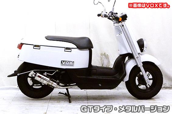 ※受注生産商品となっており、商品手配後 2週間程度入荷にお時間を頂きます。※平成22年4月1日より施行された認証制度に適合する認証マフラーではありません。ご理解の程よろしくお願い致します。※ジョグ【型式:JBH-SA55J】・ジョグZR【型式:JBH-SA56J】のO2センサー装着モデルに適合します。※その他の型式、O2センサー非装着モデルには適合しませんのでご注意下さい。新時代から導き出された究極のイノベーションデザインで非常にインパクトあるマフラーです。メタルバージョンはステンレスをバフ磨きでピカピカに仕上げています。EVOタイプ同様のブラックアルマイト処理を施したビレットタイプのテールマウントに、シンプルかつレーシーなイメージの【GTタイプ】消音用のバッフルが2個装備されている【ダブルバッフル仕様】となっており、バッフル無し、バッフル1個装着、バッフル2個装着と3種類の排気音を選べるサウンドセレクトスタイルになっています。バッフルはステンレスタイプとアルミタイプの2種類のバッフルが装備されています。音量はバッフル2個装着時の排気音量が 約82db(法定規制値内音量)、バッフル1個装着時の排気音量が 約84db、バッフル非装着時の排気音量が 約87db です。 音質も耳障りな音でなく重低音のサウンドになっていますので、ノーマルマフラーではちょっと物足りない方にオススメです。サイレンサーはストレート構造ではなく隔壁構造になっていますので、音量は静かめに抑えられており近所迷惑になる事無く安心して走行できます。低中速を落とすことなく高回転でスムーズに回り扱いやすい設定になっています。振動防止のためサイレンサーとエキパイが2分割となる安心設計になっています。サイレンサーは、2点止めになっていますのでしっかりと固定でき、耐久性にも優れています。無加工ボルトオンにて装着できますので、必要な工具があれば簡単に取り付けできます。(取り付けに必要なボルト類は全て付属しております。)サイレンサーバンドにはスリットタイプを採用してデザインにもこだわっています。サイレンサーの固定にはサイレンサーバンドを採用し、バフ仕上げを施したステンレス製丸棒で組んだステーを介して固定しておりますので、従来のステーの固定より車体と調和した高級感あふれるマフラーです。オールステンレス製で、エキパイからサイレンサーまでバフ仕上げを施しています。ローダウンにも対応しておりますので、安心してご使用下さい。