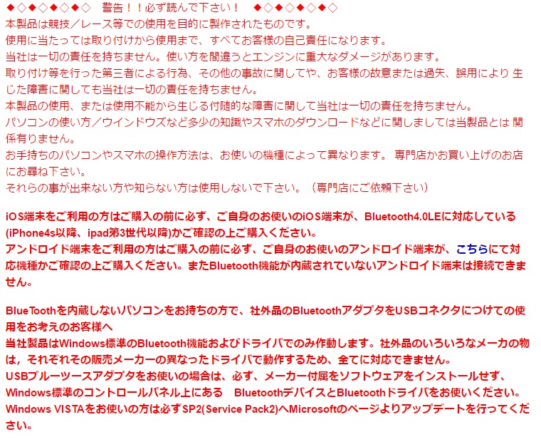 インジェクションコントロールサブコン「ENIGMA」に「O2リプレイサー」を内蔵したプレミアムバージョンです。O2リプレイサーをEnigmaに内臓している一体型で、コンパクトです。Bluetooth /Bluetooth LE接続モデル アンドロイド/iOS両方に対応しますアンドロイド端末、iOS端末とWindowsPCに接続可能です。MACには接続不可同じ燃調MAPをEnigmaを介してPCとスマホで共用出来ます。YAMAHA マジェスティ-S/S-MAX(155cc) (国内モデル/海外モデル) 専用※海外で販売されているMajesty-S(125cc) には対応しません。当製品はインジェクション制御バイクのノーマルECUに割り込み接続することにより、 優れた燃料制御性能を発揮します。今まで出来なかったさまざまなセッティングや変更が出来るようになります。また、O2センサーフィードバックエリアではサブコンで増量/減量しても、O2フィードバック機能により燃調がある程度元に戻されてしまいますが「O2リプレイサー」がフィードバック機能を停止させアイドリングから全ての回転域で確実に増量/減量を実現しパーフェクトな燃調が行えます。全てのコントロールはパソコン画面かスマートフォン(iOS端末またはアンドロイドスマホ)で行えます。専用のENIGMA操作用ソフトウェアー/説明書は当社HPより無料でPCにダウンロード出来ます。スマートフォン用アプリiOS版はApp Storeから、アンドロイド版はGoogle Playよりダウンロード(300円税抜)して下さい。(各説明画面をよく読んでお間違えの無いようお願い致します)画像中の説明文を必ずご確認の上ご購入くださいませ。