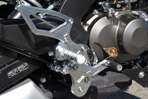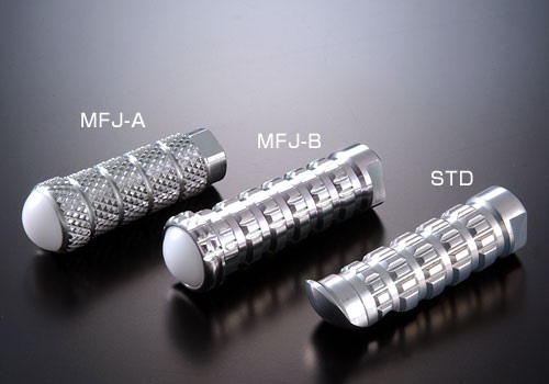 アルミ削り出し製4ポジション UP:55mm/65mm BACK:110mm/120mmペダルをステップバーと別軸とする事により万が一の転倒によるペダルへのダメージを減らします。ステップバーの組み換えも可能です。(MFJ-Bが出荷標準となります、組み換えはMFJ-Aに限ります)ステップバーエンドの色は白です。※STDブレーキスイッチの使用が可能です。