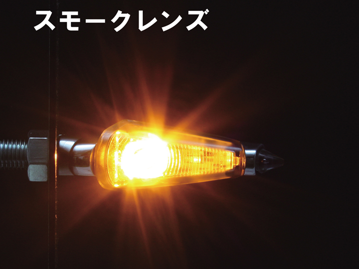 LEDダガーウインカー アルミ製クロームメッキスチール製 取付ステー取付ボルト M10×P1.25スモークレンズ消費電力 12V2Wノーマル位置に取付ICリレー/専用ジョイントハーネス付ポジションランプは使用できません