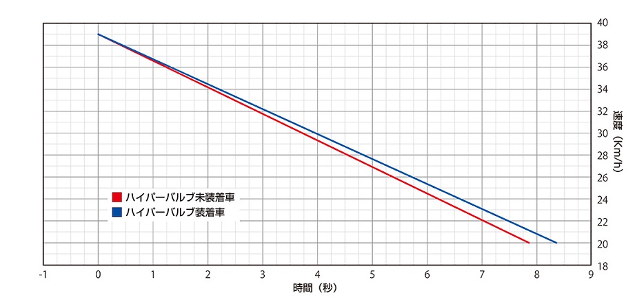 上記エンジンブレーキ特性比較グラフで表しているように、アクセルを戻した際のエンジンブレーキでの減速が、80km/h辺りから60km/hまでの間で減速時間が約1秒違っています。