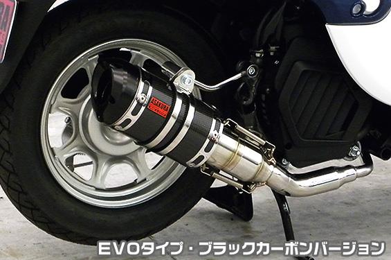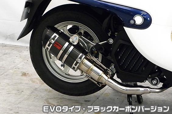 ※平成22年4月1日より施行された認証制度に適合する認証マフラーではありません。 ご理解の程よろしくお願い致します。※型式:JBH-AF77 に適合します。※その他の型式には適合しませんのでご注意下さい。新時代から導き出された究極のイノベーションデザインで非常にインパクトあるマフラーです。サイレンサーは【 ブラックカーボンバージョン 】ステンレスサイレンサーにカーボンシートを巻いた仕様で、耐久性が抜群に高い構造を採用しています。排気口はアルミ素材から削り出したビレットタイプのエンドに、ブラックアルマイト処理を施した【 EVOタイプ 】消音用のバッフルが2個装備されている【 ダブルバッフル仕様 】となっており、バッフル無し、バッフル1個装着、バッフル2個装着と3種類の排気音を選べるサウンドセレクトスタイルになっています。バッフルはステンレスタイプ(EVOタイプはプレートタイプ)とアルミタイプの2種類のバッフルが装備されています。音量はバッフル2個装着時の排気音量が 約82db(法定規制値内音量)、バッフル1個装着時の排気音量が 約84db、バッフル非装着時の排気音量が 約87db です。 音質も耳障りな音でなく重低音のサウンドになっていますので、ノーマルマフラーではちょっと物足りない方にオススメです。サイレンサーはストレート構造ではなく隔壁構造になっていますので、音量は静かめに抑えられており近所迷惑になる事無く安心して走行できます。低中速を落とすことなく高回転でスムーズに回り扱いやすい設定になっています。振動防止のためサイレンサーとエキパイが2分割となる安心設計になっています。サイレンサーは、2点止めになっていますのでしっかりと固定でき、耐久性にも優れています。無加工ボルトオンにて装着できますので、必要な工具があれば簡単に取り付けできます。(取り付けに必要なボルト類は全て付属しております。)サイレンサーバンドにはスリットタイプを採用してデザインにもこだわっています。サイレンサーの固定にはサイレンサーバンドを採用し、バフ仕上げを施したステンレス製丸棒で組んだステーを介して固定しておりますので、従来のステーの固定より車体と調和した高級感あふれるマフラーです。オールステンレス製で、エキパイからサイレンサーまでバフ仕上げを施しています。ローダウンにも対応しておりますので、安心してご使用下さい。
