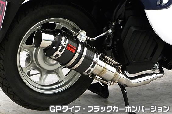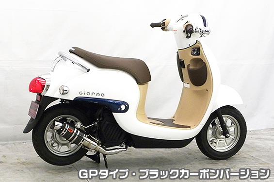 ※平成22年4月1日より施行された認証制度に適合する認証マフラーではありません。 ご理解の程よろしくお願い致します。※型式:JBH-AF77 に適合します。※その他の型式には適合しませんのでご注意下さい。新時代から導き出された究極のイノベーションデザインで非常にインパクトあるマフラーです。サイレンサーは【 ブラックカーボンバージョン 】ステンレスサイレンサーにカーボンシートを巻いた仕様で、耐久性が抜群に高い構造を採用しています。排気口はアルミ素材から削り出したブラックアルマイト処理を施したビレットタイプのテールマウントに、シンプルかつレーシーなイメージの【 GPタイプ 】消音用のバッフルが2個装備されている【 ダブルバッフル仕様 】となっており、バッフル無し、バッフル1個装着、バッフル2個装着と3種類の排気音を選べるサウンドセレクトスタイルになっています。バッフルはステンレスタイプ(EVOタイプはプレートタイプ)とアルミタイプの2種類のバッフルが装備されています。音量はバッフル2個装着時の排気音量が 約82db(法定規制値内音量)、バッフル1個装着時の排気音量が 約84db、バッフル非装着時の排気音量が 約87db です。 音質も耳障りな音でなく重低音のサウンドになっていますので、ノーマルマフラーではちょっと物足りない方にオススメです。サイレンサーはストレート構造ではなく隔壁構造になっていますので、音量は静かめに抑えられており近所迷惑になる事無く安心して走行できます。低中速を落とすことなく高回転でスムーズに回り扱いやすい設定になっています。振動防止のためサイレンサーとエキパイが2分割となる安心設計になっています。サイレンサーは、2点止めになっていますのでしっかりと固定でき、耐久性にも優れています。無加工ボルトオンにて装着できますので、必要な工具があれば簡単に取り付けできます。(取り付けに必要なボルト類は全て付属しております。)サイレンサーバンドにはスリットタイプを採用してデザインにもこだわっています。サイレンサーの固定にはサイレンサーバンドを採用し、バフ仕上げを施したステンレス製丸棒で組んだステーを介して固定しておりますので、従来のステーの固定より車体と調和した高級感あふれるマフラーです。オールステンレス製で、エキパイからサイレンサーまでバフ仕上げを施しています。ローダウンにも対応しておりますので、安心してご使用下さい。