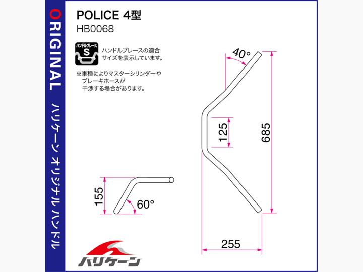 ※こちらの商品は当該ハンドルを取り付けるためのケーブル・ワイヤーがセットになった便利な商品です。ワイヤー・ケーブル付属内容:スロットルケーブル・クラッチケーブル・ブレーキホース【別途必要なもの】※ハーネスの延長※スイッチ穴開け加工が必要になります。穴あけ加工にはハンドル穴加工ガイド:品番HK4005をご利用ください。※ブレーキフルード※サイドキャップ(内径φ18mm用)※画像中のハンドルクランプ(ホルダー又はポスト)等は商品に含まれません。ハンドルは日本製です。試作、装着確認、量産、一貫して自社で管理。東大阪で長年培った技術とノウハウによる素材の厳選、数種類の研磨、品番の刻印、高精度な曲げ加工や溶接、高品質な表面処理など多くのこだわりが詰まったハンドルバーです。引張強さに優れたSTKM13Aスチール材を使用。