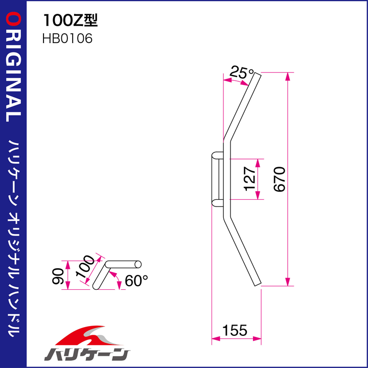 100Z型 ハンドルセット クロームメッキ HURRICANE(ハリケーン) GB250(クラブマン)90〜94年