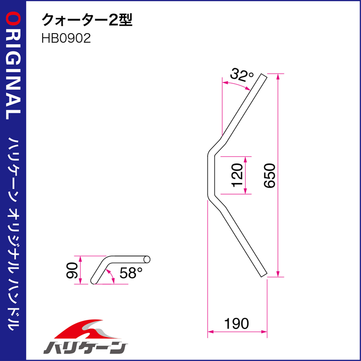クォーター2型 ハンドルセット クロームメッキ HURRICANE(ハリケーン) GB250(クラブマン)90〜94年