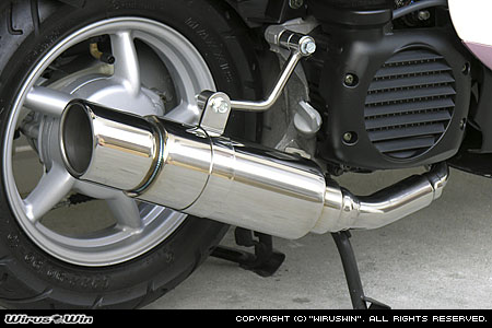 ※平成22年4月1日より施行された認証制度に適合する認証マフラーではありません。ご理解の程よろしくお願い致します。落ち着きのあるハイクオリティーデザインでシンプルに仕上がっています。性能面では排圧によるコントロールで低速から高速までスムーズな走行を実現しています。消音材には、上質のグラスウールとスチールウールを使用していますので、音は静音で重低音サウンドを醸し出します。心地よい低音を堪能できます。取り付けはサイレンサーバンドを使用してしっかり2点止めで固定きます。ボルトオンで簡単に装着できます。センタースタンドはそのままで取り付けでき使用も可能です。サイレンサー出口は、ポッパータイプ。オールステンレス製。WirusWinステッカー付属。バッフル(消音用のパーツ)を標準装備!!簡単な作業で2種類の音量が選択可能!!バッフル装着時 排気音量 約 84db(法定音量規制内)バッフル非装着時 排気音量 約 88db