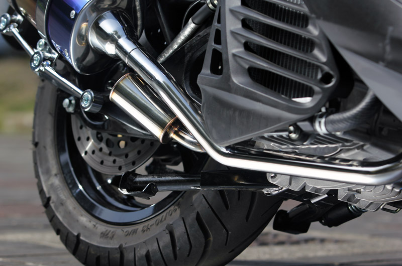 性能にベストの長さを見つけだし車体に収めたエキゾーストパイプ