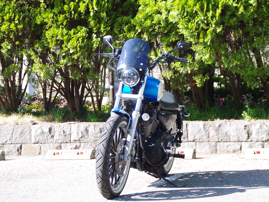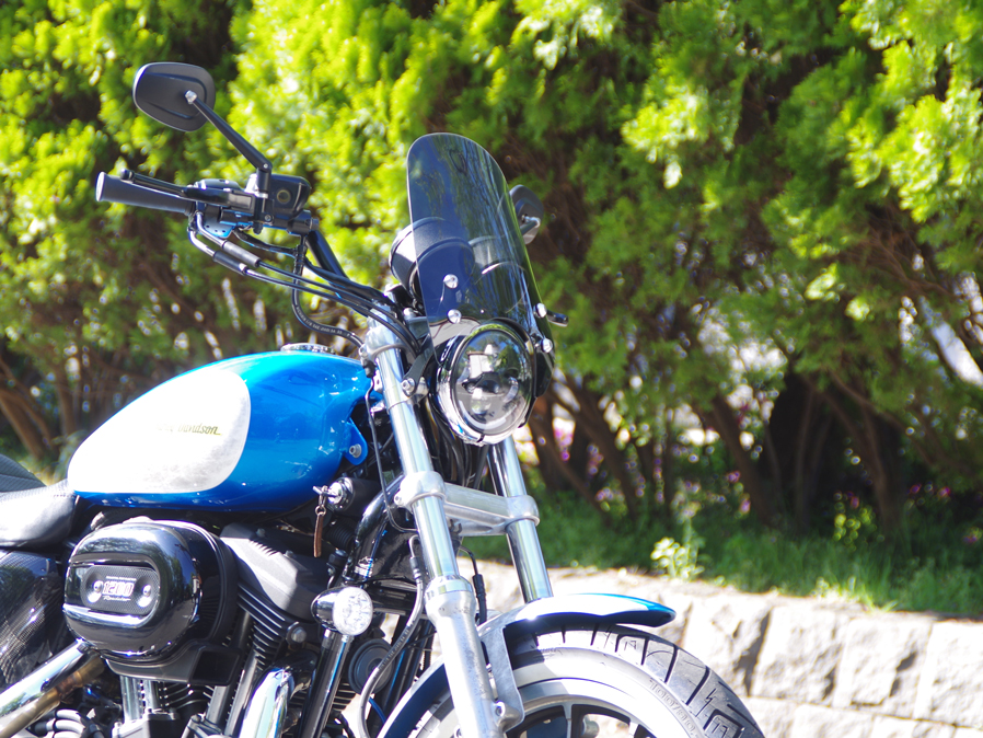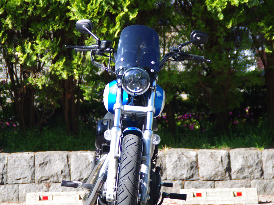 ワールドウォークでは汎用のスクリーンを多数取り揃えていますが特に人気なのは丸目一灯のヘッドライト採用車両に装着するメーターバイザーです。今まで多くのユーザーの声を取り上げて商品開発に採用してきましたが、汎用のメーターバイザーをフロントフォークにクランプするウインカーステーを使って装着するアイデアもお客様から頂きました。アイデアをくれたのがスポーツスターユーザーだったこともあり多くのスポーツスターユーザーにメーターバイザーは支持されました。しかし汎用という事もあり、取り付けステーがうまく装着できないバイザーとヘッドライトの間が空きすぎるといった声も多数頂いてきました。そこで今回リリースするのはスポーツスター専用にステー、スクリーン共にゼロから設計したスクリーンです。ロングタイプは胸からお腹にかけて風のあたりを緩和させつつ、ヘルメットにあたる風も緩和させます。スポーツスターはVツインエンジンを搭載することで全体的なシルエットを細く仕上げているので横幅は狭く設定しイメージを崩さないようにしました。スクリーンはスポーツスター用に設計した専用設計のため、ヘッドライトリムの外側にピタリと沿うようにデザインしました。取り付けはフロントフォークにステンレスのバンドをクランプさせて行います39φのフロントフォーク専用に設計しました。メーターバイザー側は板材を加工して作ったスチールの黒塗装ステーを付属しています。ボルト類は腐食に強いステンレスを採用し、スクリーンの傷つき防止とボルトの締付力を確実に伝える為にアルミの飾りワッシャー(フジツボ)を付属しています。カラー・材質:スモーク・アクリルサイズ:縦340mm×横240mm※ご注意:39Φのフロントフォーク採用車両専用です