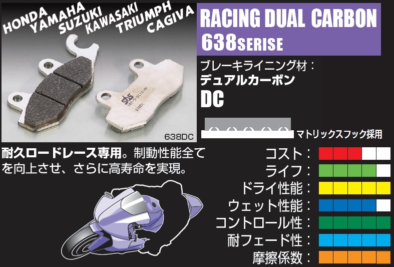 レーシング(デュアルカーボン)ブレーキパッド 638DC フロント用(右側キャリパー) SBS(エスビーエス) スカイウェイブ400(SKYWAVE)CK44A/CK45A