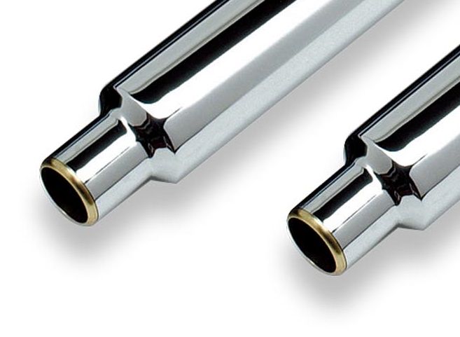 適合車種エンジンタイプ:TC96マフラータイプ:スリップオンマフラーサイレンサー形状:グライドシガー全長:720mm外径:76mm材質/カラー:真鍮素材を研磨後クロームメッキ仕上げ/エンドカラー仕様:ソリッドバフ仕様:インナーサイレンサー標準穴径(12mm)組込済/取付ステー付属。マフラーには後部にモーターステージロゴがレーザーで刻印されております。特徴:ブラスマフラーはノーマルエキパイにスリップオン取付です。マフラー本体の外殻部に他に類を見ない管楽器と同じ真鍮素材を採用。肉厚の真鍮素材と独自のインナーサイレンサーでハーレーらしい重低音でキレのある音質を実現。インナーサイレンサー側面の穴径を変えることで音質、音量を変更することが可能(別途お買い求めください)。FLD/15〜FXDLは標準で12mmが装着されています(規制外)。車種別専用ステーが同梱されておりますので、マフラーのセットのみでボルトオン装着可能です。備考:排気の音量、効率を変更したい場合は別売の交換用インナ-サイレンサーを別途お求めください。